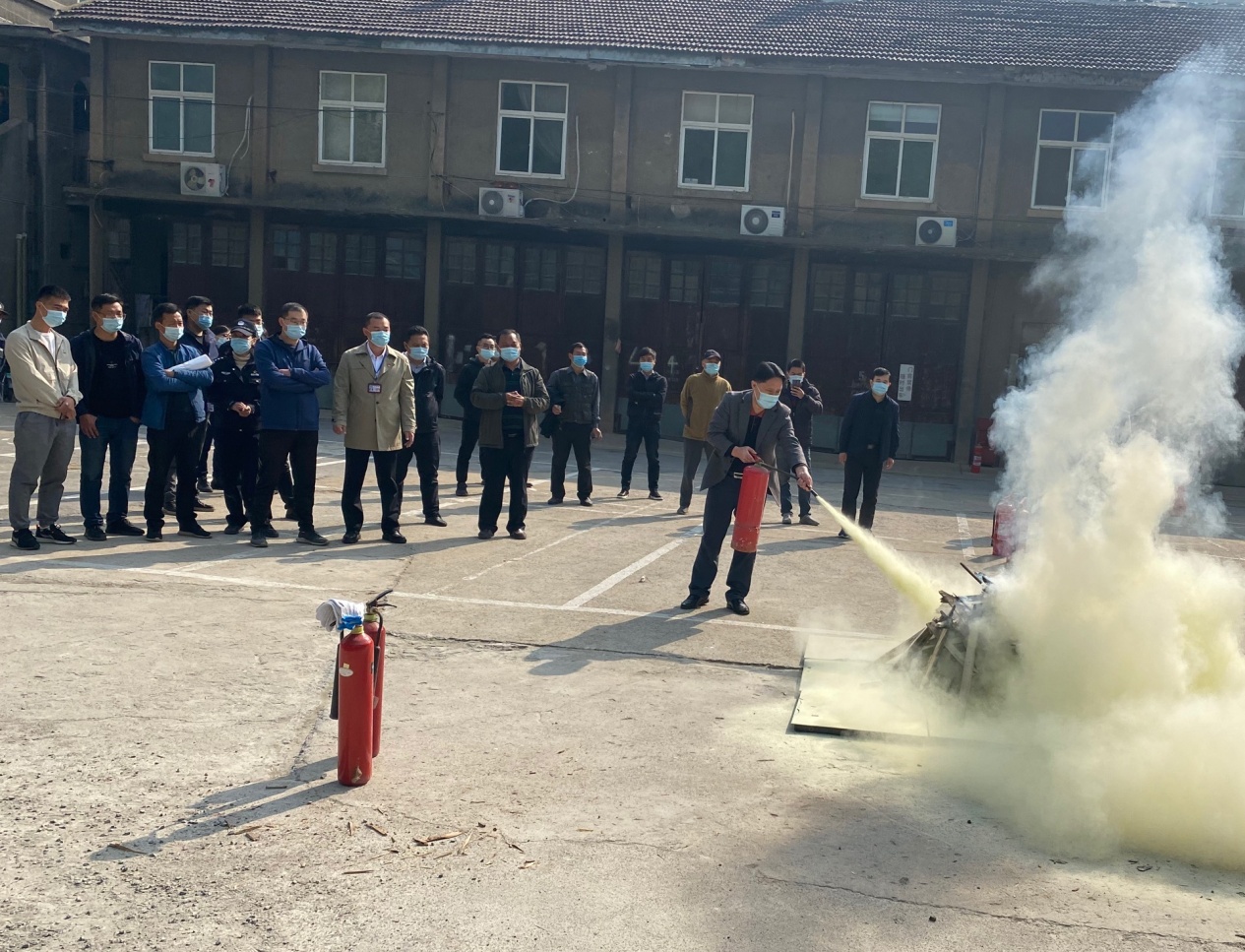 首先,安全培訓人員講解了有關火災現場的應急處置方案,滅火器的使用方法以及相關的注意事項,并親自演練了滅火器的使用方法。